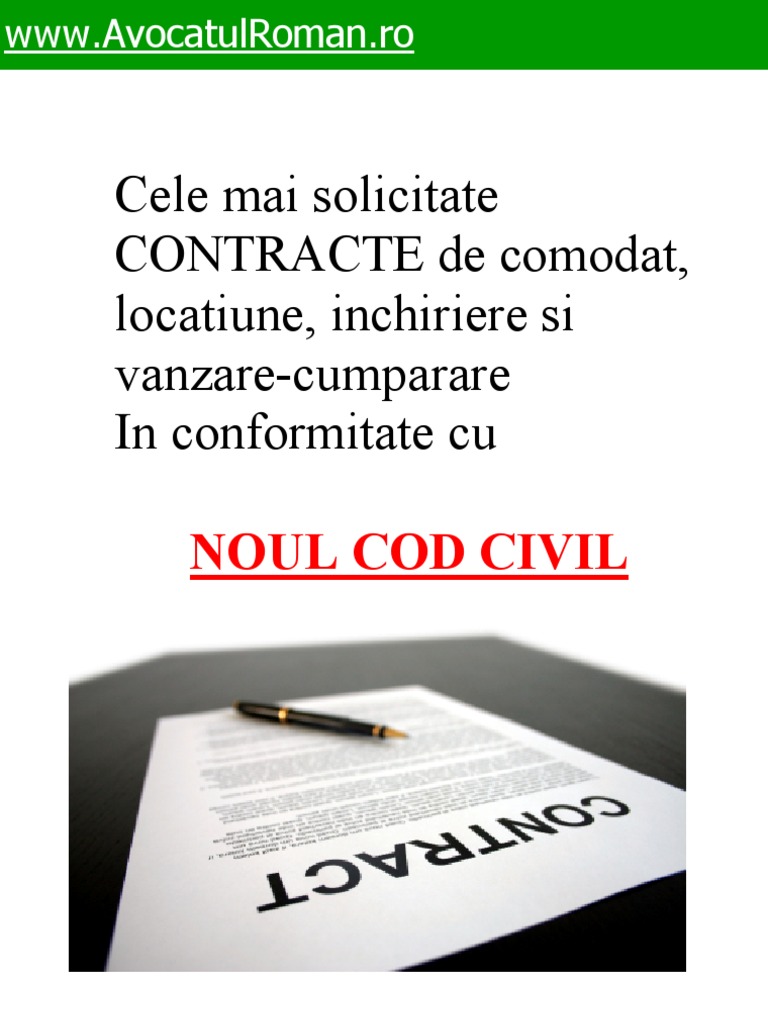 Contractul de comodat reprezintă un act prin care o persoană (numită comodant) dă spre folosință altei părți (numită comodatar) un anumit bun, fie el mobil sau imobil 2146 din noul cod civil. Prima pagină » dicţionar juridic » drept civil » contract de comodat. Împrumutul de folosinţă încetează prin executarea obligaţiilor de către comodatar, adică restituirea bunului la codul civil nu prevede un termen pentru comodat, acest lucru fiind lăsat la latitudinea părţilor.