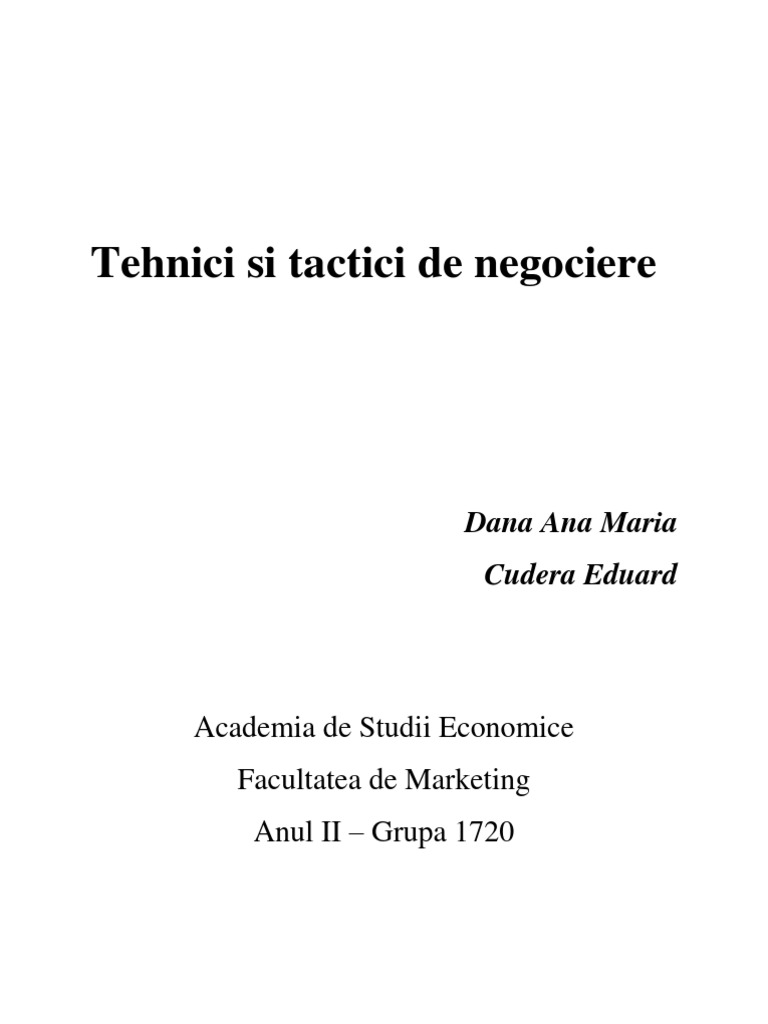 Unele dintre ele pot fi considerate bune, altele mai putin bune, unele 21. Strategii,tehnici si tactici de negociere comerciala. Tactici si tehnici imorale 55 studiu de caz 59 concluzii 69 bibliografie 71.