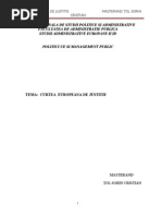 Denumirea corectă a cjue ar trebui să fie însă „curțile de justiție ale uniunii europene, fiindcă cjue cuprinde trei instanțe diferite: Curtea de justiție a uniunii europene (cjue) își are sediul în luxemburg și este organul juridic suprem al uniunii europene. Curtea europeana de justitie este instituie jurisdicional ce vegheaz la aplicarea dreptului comunitar, soluionnd disputele dintre statele membre i comisia curtea european de justiie are misiunea de a asigura aplicarea, interpretarea i respectarea dreptului comunitar pe ntreg teritoriul uniunii europene.